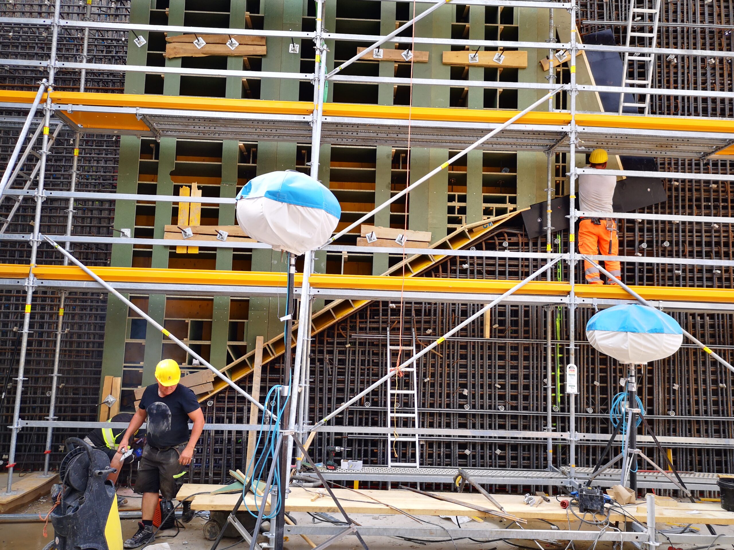 - Arbeiten unter Wasser: Häufig müssen Bewehrungsarbeiten unter Wasser stattfinden oder bei hohem Wasserstand durchgeführt werden. Dies erfordert spezifische Ausrüstung und Sicherheitsmaßnahmen, wie etwa den Einsatz von Tauchern und Abdichtungen.